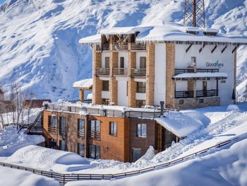 Отель Good Aura расположен в самом центре горнолыжного курорта Гудаури. К услугам гостей бесплатный Wi-Fi, терраса, сад, принадлежности для барбекю и бесплатная парковка. Для гостей отеля Good Aura организуют бесплатный трансфер от/до канатной дороги.