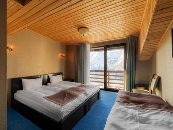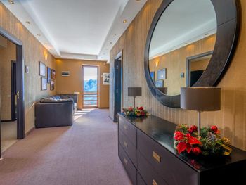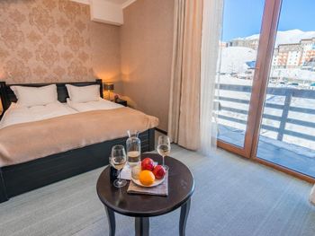 Супермаркет и кафе в 2х минутах ходьбы, до подъемника 10 мин пешком, есть бесплатный трансфер от отеля. Завтрак не сильно разнообразный, но вкусный и все свежее. В номере есть фен, телевизор. Хороший вайфай. Есть бесплатный бильярдный стол, есть спа-центр с 2мя саунами, джакузи и уличным бассейном. Можно заказать массаж. Отличная уборка номера, всегда было чисто и аккуратно застелены кровати. В номере тепло, в одной из комнат регулируется батарея. В ванной хороший горячий регулируемый полотенцесушитель. Есть комната для хранения горнолыжного оборудования.