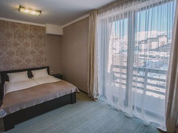Номера немного поизносились, вид был не на горы, а на горы со стройкой