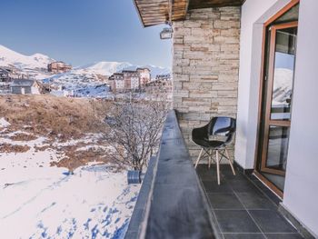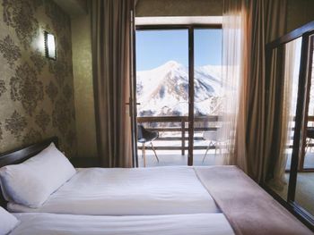 Красивый вид из номера на горнолыжный склон...