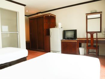 Провели в этом отеле две ночи. Хорошее расположение, вокруг (см. фото) куча лавочек, развлечений, еды, массажа, прямо перед отелем обмен валюты и тп. Дружелюбный персонал, приехали поздно, были проблемы с оплатой картой, нам пошли навстречу, мы сняли деньги и заплатили на следующий день. Есть лифт. Претензий по номеру нет, все стандартно, старенькое, конечно, но все работало, и все чисто. Ну мне лично не хватило тумбочки с моей стороны кровати, но в Тае это обычно. Для ориентированных на бюджетный отдых-вполне нормально.