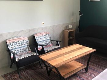 Общая зона на первом этаже, где можно посидеть и пообщаться всем вместе за столом. Кофе чай в свободном доступе. Хозяева угощали грецкими орехами и подарили бутылку вина при отъезде!