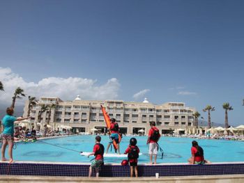 Бассейн отличный (чистый и большой), море даже в шторм великолепно. Вход в море долгий. Лежаки и прочий инвентарь нормальный, но это не 5 звезд опять же