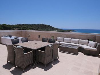 Удаленность, наличие своего пляжа без соседей.Всегда хороший ассортимент на кухне и мяса и рыбы.Охраняемая стоянка.Большой бассейн, но вода слишком теплая