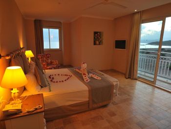 Прекрасный песчаный пляж, что очень редко для Турции. Очень чистая вода в море. С моря замечательный вид на горы. На этом , к сожалению, плюсы отеля заканчиваются.