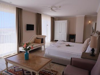 Небольшой отель, очень со вкусом сделанный. Очень понравились комнаты - просторные, красивые, с видом на море. Еда - отличная, причем, в турецких традициях: много овощей, сыра, оливок. В обед делают гёзлеме. Выбор реально огромный, очень вкусно. Отличный бассейн (и диджей! что редкость)))), свой пляж - большой и песчаный, очень чистая вода. В общем, все основные пункты соблюдены и на высоте.
