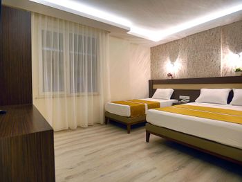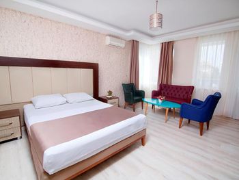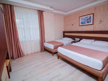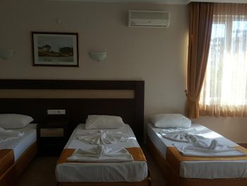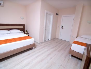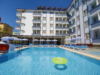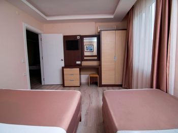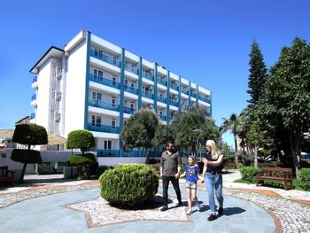 Двое взрослых + ребёнок 4 года, отдыхали мы неделю. Сразу скажу, отель не вау, не Новый, ремонт такое себе, в номерах мебель простая, ванная комната с душевой на троечку, еда всегда похожа и надоела через 3 дня. Но атмосфера очень душевная, персонал приветливый, убирают каждый день ☝️ для детей все есть, много семейных, анимации мало, но разнообразие развлечений имеется. С ребёнком нужно будет заниматься и следить, но в целом, впечатление очень хорошее, доброе какое то) расположен отель в жилом районе Алании, вокруг не много отелей, жилые элитные дома, до пляжа 5 минут пешком, есть свой у отеля.