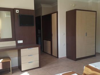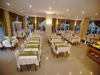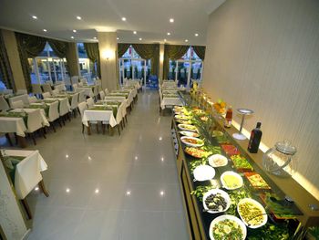 Питание хорошее, нас всё устроило - несколько сортов оливок, помидоры/огурцы, салаты, кабачки, баклажаны, сыры, мясо, всегда была свежая зелень. Кухня ориентирована на русских, было даже картофельное пюре. Порадовало, что блюда не острые. Официанты внимательные, шустрые. До моря 5-10 минут. Пляж песок.