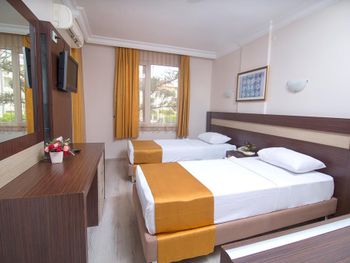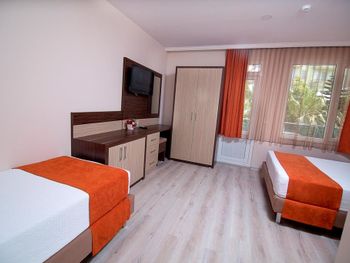 Плохая звукоизоляция в номерах. Гул от водяного насоса. Вафельные одеяла - крайне неприятная материя. Неудачное расположение кондиционера. Спалось откровенно плохо. Духота, лишние звуки, в том числе болтающие до поздней ночи таксисты под окном. Заход в море каменистый - берегите ноги (говорят это общая черта Алании) - порезы, ссадины - с вероятностью 100%. К третьему дню вырабатывается рефлекс, как правильно заходить в море. До центра города такси 10 евро. Пешком до центра - 45-50 мин. В округе мало кафешек. Погулять вечерком можно, пожалуй, только по набережной. Анимация - слабая. Невысокая оценка связана прежде всего с бессонными ночами.