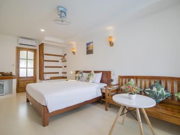 Персонал хорошо говорит на русском и английском. Довольно тихо в номере. Удобные кровати и подушки. Можно взять байк на прокат 150 донгов/сутки и 50 за бак бензина, если он полностью заправлен. Завтраки разнообразные день ко дню, но выбор блюд ограничен меню, которое составляет шеф-повар на день. Во сколько бы вы ни встали, всегда будет на завтрак еда, блюда постоянно обновляют. За все возможна оплата по карте. Ежедневная смена средств гигиены. Хороший большой бассейн. Месторасположение хорошее, вдали от шумной улицы.