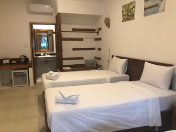 Были с другом на отдыхе с 06,12,2018 по 13.12.2018. По прилету на Фукуок нам организовали трансфер и после длительного перелета и размещения в отеле было очень приятно сразу окунуться в теплый бассейн который уютно расположен на территории. Отель новый номера не очень большие но все что нужно имеется холодильник кондиционер сейф телевизор чайник просторная душевая полотенца.Бесплатно выдают пляжные полотенца.Отличные завтраки и ужины. На ужин порции просто огромные.Море в 300 метрах через дорогу.По пути можно купить свежие фрукты посидеть в кафе.В отеле можно арендовать скутер или байк. Стоимость на 4 часа около 220 рублей по курсу на день порядка 450 рублей и покататься по острову и смотаться на другие пляжи или поездить по магазинам.Вообщем результат превзошел наши ожидания мы очень довольны отелем и персоналом. Выражаем им искреннюю благодарность.