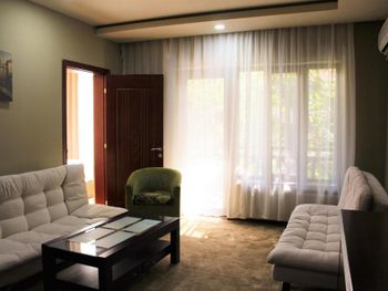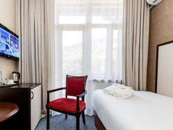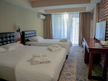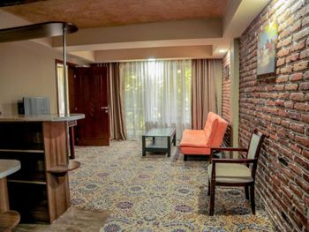 Отель хороший, кроме персонала...... Я давно не чувствовала себя в атмосфере тюремного надзора и желания окружающего персонала обобрать((((. Стоимость самая высокая в Боржоми... но ванные принадлежности не все выдают...вернее, выдали по моей просьбе. Задала вопроса главному менеджеру - почему не ставите в ванну сами, ведь в оплаченной стоимости номера они включены. Ответ превзошел все мои ожидания: "Да, входит в стоимость набор для зубов, но мы его не выдаем ПО ТЕХНИКЕ БЕЗОПАСНОСТИ!! - так как он входят в список, которые немного опасны для гостей"....слов нет... и так во всем - вода по просьбе, к чаю по просьбе... Забронировала дополнительный день за одну сумму. На следующий день сказали что цена повысилась, нужна доплата,..... съехала...так персонал гостиницы искал меня у сына в номере!!! вечером..типа - мы понимаем что она у вас планирует ночевать бесплатно и зайцем.. что, если необходимо, мы дадим дополнительную кровать за дополнительную оплату. Непорядочность их самих они переносят на гостей. Холодное отношение.