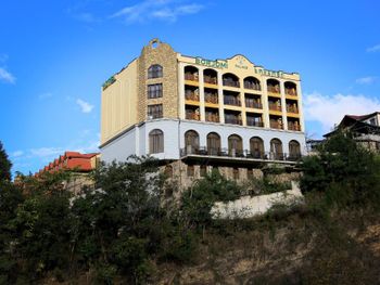 Это санаторий,с большим перечнем услуг. Мы остановились на одну ночь,нам подарили ужин на троих. Ужин в ресторане,со шведским столом,еда разнообразная,вкусная. Было выступление хора,грузинских певцов. Бассейн внутренний и наружный,сауна с 20:00-22:00. Тренажёрный зал и тд. Есть банкомат. Парковка