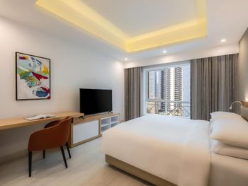 Из апартаментов Marriott Executive City Center Doha, расположенных в северной части набережной Корниш-Бей, открывается великолепный вид на Персидский залив. К услугам гостей крытый и открытый бассейны, полностью оборудованный тренажерный зал и сауна.
