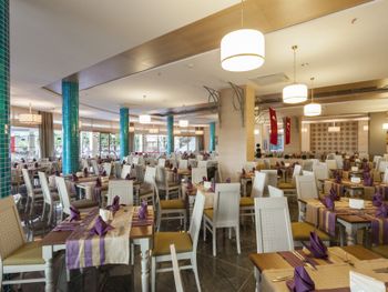 прочитав предыдущие отзывы, я несколько разочаровалась. Но, сказав себе:"что всё будет хорошо", мы всей семьёй "двинули" в Турцию. Размещение: отель не для слишком требовательных туристов. мы жили в семейном номере, просто идеальный вариант, если имеешь 2-х детей. Отель находится на 1-й линии. Этот район ещё совсем новый, активно идёт строительство. Поэтому вечерние прогулки только до местных магазинчиков без достопримечательностей. В отеле я бы сказала, просто отличное питание. Что касается столиков в ресторане. Знаете, мы всегда приходили в числе первых к началу завтрака, обеда или ужина (т.к не любим поздний ужин). Ни разу не было такого, чтобы отсутствовали свободные столы. Если вы едете без детей, то есть отдельно отведённая зона-ресторан 16+, где очень даже комфортно (посещали его, когда наши детки спали:-)). Вообщем, как обычно: как настроишься, так и проведёшь отдых. И последнее: дествительно просто обалденная команда аниматоров (хотя мы и нечасто посещали развлек.мероприятия), очень понравился тренажёрный зал.