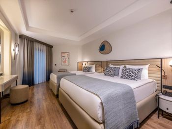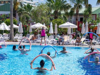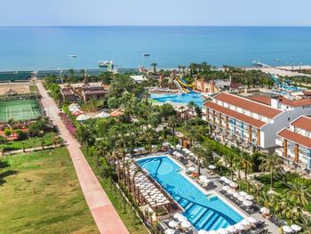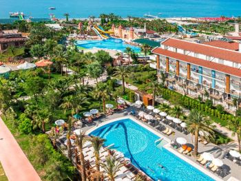 Среднего класса гостиница предлагает разные развлечения и услуги. Есть два корпуса ближе к морю, в котором заселяют с детьми до 13 лет, и подальше од моря где +13. Сделана реновация нетипичная Турецкому стилю, но все аккуратно, незагруженное и стильно. Еда однообразная, напитки как импортного так и иностранного производства. Анимация старается, развлечений достаточно как для взрослых так и для детей. Много лежаков на пляже, но очень близко к друг другу.