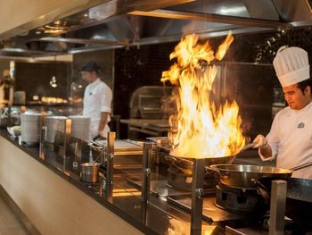 В ресторане Aspendos с обслуживанием по типу «шведский стол» подаются блюда традиционной и интернациональной кухни. Кроме того, в курортном отеле Belek Beach работают итальянский ресторан Flamingo и турецкий ресторан Sofra с обслуживанием по меню. В снэк-баре отеля можно попробовать приготовленные вручную гезлеме (традиционные турецкие лепешки).