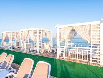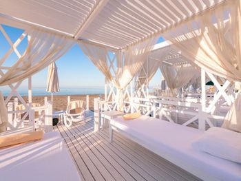 Хороший, чистый пляж. Все лежаки под тентами. Доброжелательный персонал.