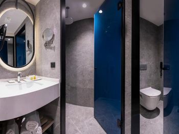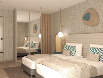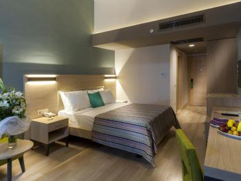 Номер был маленький,определенно требует реновации,зато близко к морю.Если этот фактор значения не имеет и хочется номер получше просите в главном корпусе-он дальше от моря,но новый.В душевой кабине помыться для человека чуть крупнее среднего телосложения(к примеру,мои ттх-190 см,95кг)-это надо извернуться.Постоянно слетали дверцы душевой кабины.Из мыльнорыльного-только мыло,ни шампуней,ни бальзамов,ни кремов нет.Тапочек,кстати,тоже нет.На 4м этаже на балконе не уединиться-отсутствуют перегородки с соседними номерами,лишь некое подобие поручней.Отель заточен под немцев-их 80%.Вся анимация на немецком-ребенку было не интересно.Отель большой,на 1,5 тысячи человек,периодически образуются очереди на барах и в ресторанах.