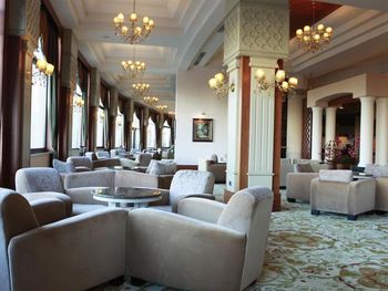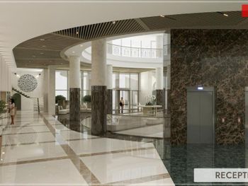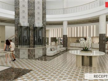 Очень красивый холл: высоченный потолок, грандиозные люстры (только одна горит), вид из лифта, как и из окон, - вдохновляет.