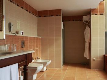 Бассейн холодный. Наш трёхлетний малыш сразу замёрз, несмотря на активность, годовалого мы даже не рискнули отпускать. А ведь сауна, хамам и душ не работают. Отогревали пацана в ванной в номере.