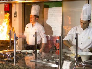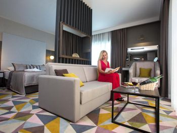 В изысканных ресторанах отеля Fame Residence в помещении и на открытом воздухе подают блюда итальянской, китайской, турецкой кухни. В барах спа-отеля предлагают великолепные напитки.