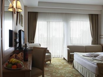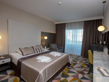 Все комфортабельные номера курортного отеля Fame Residence Lara декорированы в мягких тонах и оснащены кондиционером. Из некоторых номеров открывается красивый вид на Средиземное море.