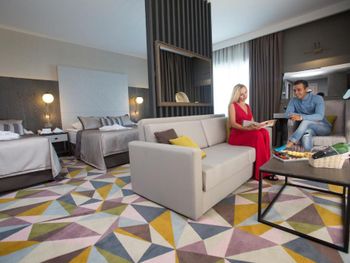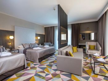 Насладитесь великолепным сервисом в Fame Residence Lara & SpaПриморский спа-отель Fame Residence Lara расположен на Средиземноморском побережье. К услугам гостей собственный пляж, отмеченный Голубым флагом, спа-центр и большой открытый бассейн с водными горками. Отель предоставляет для проживания роскошно оформленные, современные номера. В местах общего пользования доступен бесплатный Wi-Fi.