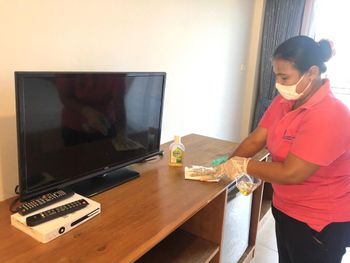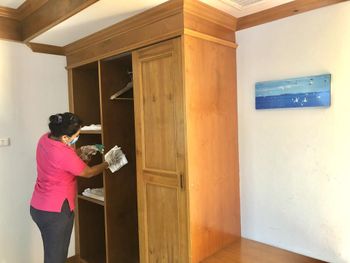 Чисто, регулярная уборка, большой номер. Можно на месте взять завтрак, если не включён. Рядом недорогая аренда мотобайков. Просторные номера.
