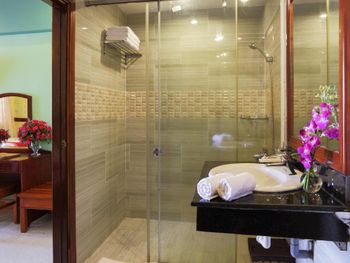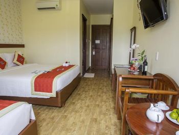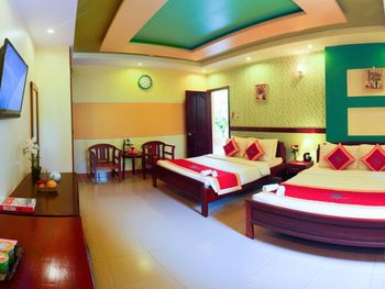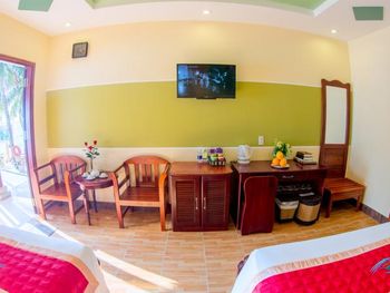 I liked that the hotel staff are polite and attentive and try to help in solving the problem. At the reception, many speak English quite well. Good tasty breakfasts are served every morning. The hotel is very well located, there is a beach, a swimming pool, a courtyard with greenery and is within walking distance of restaurants and cafes. Мне понравилось что персонал отеля вежливый и внимательный и старается помочь в решении проблемы. На ресепшене многие довольно хорошо говорят по английски. Каждое утро подают хорошие вкусные завтраки. Отель расположен очень хорошо, имеется: пляж, бассейн, внутренний двор с зеленью и находится в шаговой доступности от ресторанов и кафе. Tôi thích rằng các nhân viên khách sạn lịch sự và chu đáo và cố gắng giúp đỡ trong việc giải quyết vấn đề. Tại quầy lễ tân, nhiều người nói tiếng Anh khá tốt. Bữa sáng ngon miệng được phục vụ hàng ngày. Khách sạn có vị trí rất tốt, có bãi biển, hồ bơi, sân trong có cây xanh và có thể đi bộ đến các nhà hàng, quán cà phê.I don\'t quite understand how the hotel rooms are distributed. Despite the fact that the hotel had a lot of free rooms, we were settled next to a family with small children who got up early in the morning and made noise. The next day we asked to change the room and went to a meeting, it turned out that air conditioners were faulty in many rooms, only in 4th of the rooms offered to us the air conditioner worked normally. The quality of the WiFi connection is very poor (not all rooms have a good internet connection). The room was cleaned regularly, but it is impossible to say that the room is perfectly clean, but this is probably due to a little old cosmetic repairs. It would be nice to update the color of the walls and improve the lighting in the rooms. Не совсем понимаю по какому принципу распределяются номера в отеле. Несмотря на то что в отеле было много свободных номеров нас поселили по соседству с семьёй с маленькими детьми, которые вставали рано утром и шумели. На следующий день мы попросили поменять номер и нам пошли на встречу, оказалось что во многих номерах неисправны кондиционеры, лишь в 4-ом из предложенных нам номере кондиционер работал нормально. Качество WiFi соединения очень плохое (не во всех номерах хорошее соединение с интернетом). Номер убирался регулярно, но сказать что в номере идеально чисто нельзя, но это наверное из-за немного старого косметического ремонта. Не помешало бы обновить цвет стен и улучшить освещение в номерах. Tôi không hiểu lắm về cách phân bố phòng khách sạn. Mặc dù thực tế là khách sạn có rất nhiều phòng miễn phí, chúng tôi đã được định cư bên cạnh một gia đình có con nhỏ dậy sớm và ồn ào. Hôm sau chúng tôi yêu cầu đổi phòng và đi họp thì hóa ra máy lạnh nhiều phòng bị lỗi, chỉ có 4 phòng đưa ra cho chúng tôi là máy lạnh hoạt động bình thường. Chất lượng kết nối WiFi rất kém (không phải tất cả các phòng đều có kết nối internet tốt).