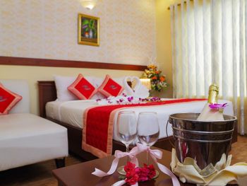 I don\'t quite understand how the hotel rooms are distributed. Despite the fact that the hotel had a lot of free rooms, we were settled next to a family with small children who got up early in the morning and made noise. The next day we asked to change the room and went to a meeting, it turned out that air conditioners were faulty in many rooms, only in 4th of the rooms offered to us the air conditioner worked normally. The quality of the WiFi connection is very poor (not all rooms have a good internet connection). The room was cleaned regularly, but it is impossible to say that the room is perfectly clean, but this is probably due to a little old cosmetic repairs. It would be nice to update the color of the walls and improve the lighting in the rooms. Не совсем понимаю по какому принципу распределяются номера в отеле. Несмотря на то что в отеле было много свободных номеров нас поселили по соседству с семьёй с маленькими детьми, которые вставали рано утром и шумели. На следующий день мы попросили поменять номер и нам пошли на встречу, оказалось что во многих номерах неисправны кондиционеры, лишь в 4-ом из предложенных нам номере кондиционер работал нормально. Качество WiFi соединения очень плохое (не во всех номерах хорошее соединение с интернетом). Номер убирался регулярно, но сказать что в номере идеально чисто нельзя, но это наверное из-за немного старого косметического ремонта. Не помешало бы обновить цвет стен и улучшить освещение в номерах. Tôi không hiểu lắm về cách phân bố phòng khách sạn. Mặc dù thực tế là khách sạn có rất nhiều phòng miễn phí, chúng tôi đã được định cư bên cạnh một gia đình có con nhỏ dậy sớm và ồn ào. Hôm sau chúng tôi yêu cầu đổi phòng và đi họp thì hóa ra máy lạnh nhiều phòng bị lỗi, chỉ có 4 phòng đưa ra cho chúng tôi là máy lạnh hoạt động bình thường. Chất lượng kết nối WiFi rất kém (không phải tất cả các phòng đều có kết nối internet tốt).