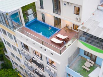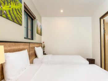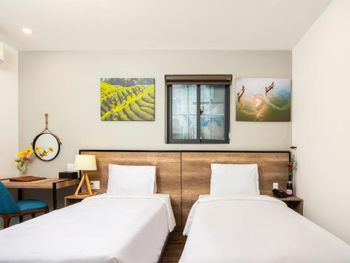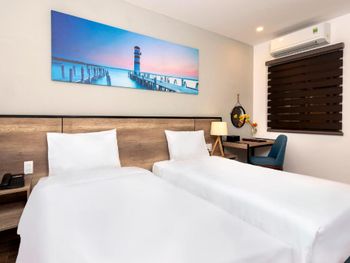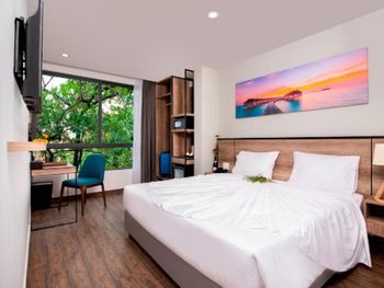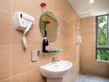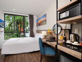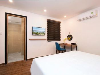В нашем номере не было окна - это главный минус. И даже при наличии свободных номеров нам не пошли навстречу и не поменяли номер. Не понравилось то, что редко меняли полотенца и не было возможности сушить где-то свои купальные костюмы. Из-за того, что купальник висел рядом с полотенцем, на полотенце остались несколько пятен. "Вы испортили полотенца", - сказали нам, и заставили заплатить штраф 130 тыс. донгов. Хотелось бы более уютную территорию возле входа в отель. Не стоянку мотоциклов, а лавочки, клумбы, качели...