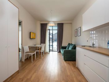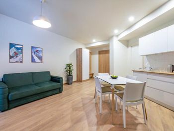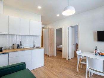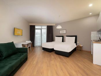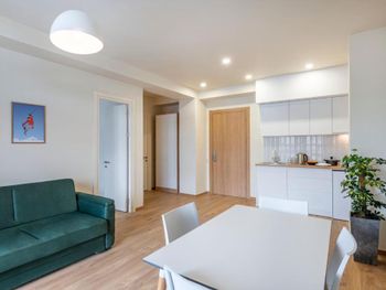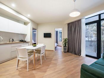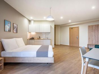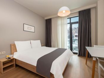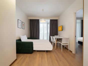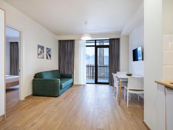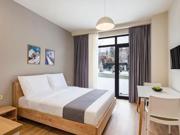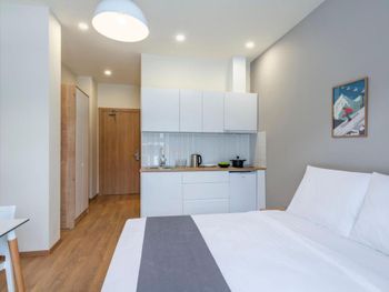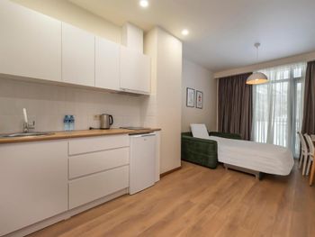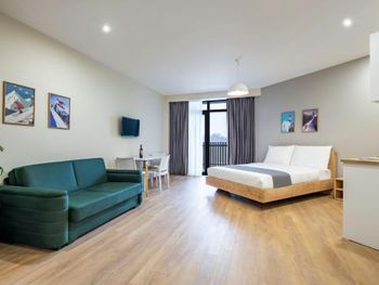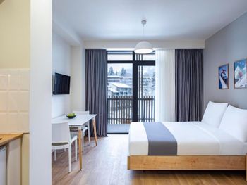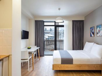Новые апартаменты со всем необходимым. Классно, что внизу есть вкусный ресторан. Каталка тоже не очень далеко. Для детей есть небольшая детская комната