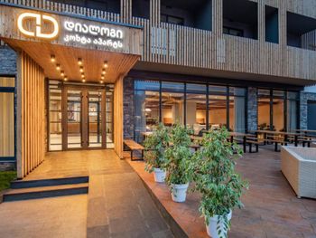 Новый отель, хорошее расположение если вы на машине - не нужно заезжать в поселок и стоять в пробках. Пешком легко дойти до канатки, правда нас окатили грязью пока шли проезжающая машина 😄 так что все же лучше брать такси за 5 лари.