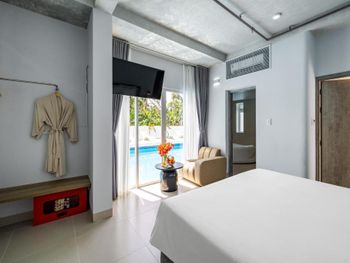Нам очень понравился этот отель. Располагается в 7-10 минутах пешком от пляжа. Но есть шаттл, который каждые 2 часа бесплатно возит на пляж. Вокруг очень много кафе и ресторанов, можно взять в аренду бесплатно велосипед. И также недорого арендовать байк. Они могут помочь с экскурсиями, с такси, трансферами. Завтраки тоже на высоте. Большой выбор. В номерах все чистое и новое. Есть большой балкон. Номера маленькие, нет шкафа, только вешалка, но мы приехали не для того, чтобы в номере сидеть. Персонал на связи 24/7. Мы остались очень довольны.