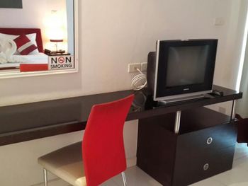 Тихий и уютный отель. Персонал очень доброжелательный и готовый помочь. В номере из эл.приборов есть: холодильник, телевизор, кондиционер, микроволновка, чайник, фен. На балконе небольшая кухня с эл.плитой. Техника, как и мебель, не новая, но все работало. Из посуды: набор тарелок, вилки, ложки, небольшая сковорода. На 5 этаже , на крыше, есть небольшой, но чистый бассейн с зоной отдыха и отличным видом на город. Внизу "family market" работает 24 ч. До пляжа 7-10 мин. пешком. Соотношение отеля по цене/качеству соответствует. Отель оставил положительные впечатления!