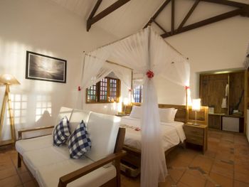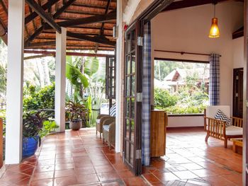 Тихий и уютный отель, вся территория грамотно продумана, есть просторные собственные дворики у коттеджей, на террасах множество тропических растений и мест для отдыха в тени, пляжная зона уютная, пожалуй лучшая на этом побережье, изобилие и разнообразие блюд на завтраках, которые проходят в комфортном ресторане (удивили квашеная капуста и маринованные огурцы :) ) кофе есть не только вьетнамский,