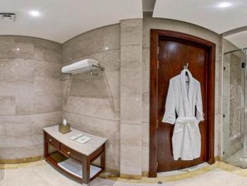 Отель очень «уставший» когда-то построенный как 5 звёзд. Теперь и на 3+ тянет с трудом. Номера убранные но все поверхности, шторы, ковёр, халаты в каких-то не приятных пятнах. Очень пыльно. Персонал равнодушный, медленный, совершенно не старающийся помочь. Не смогли забронировать столик на ужин в городе. 3 раза пришлось общаться чтобы вызвали такси в аэропорт. Если есть выбор живите в другом отеле