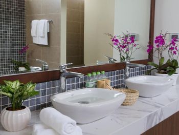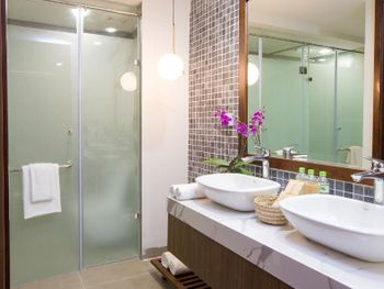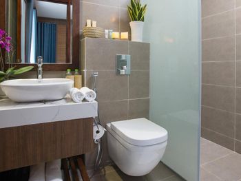 Брали виллу. Очень интересное решение: это дом, но не с отдельными комнатами, а прям с персональными номерами - это удобно! В каждом номере своя душевая, ванна и туалет. Предлставляют все необходимые предметы гигиены, кроме бальзама для волос(это так вдруг кому то важно)