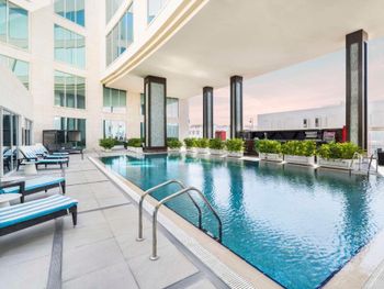 Симпатичный отель, останавливались на длинную стыковку. Просторный номер, очень любезный персонал, завтрак на 5+, хороший бассейн. Минут 20 на такси от аэропорта.