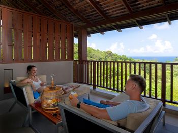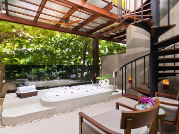 Комната с джакузи роскошная! Балкон выходил прямо на джунгли и спа центр.