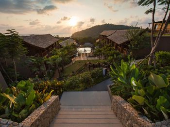 Большая территория на возвышенности, есть несколько бассейнов и террас, откуда можно наслаждаться невероятными закатами в комфорте. Так же на всей территории посажены разнообразные экзотические кустарники и деревья, среди них уютно гулять.