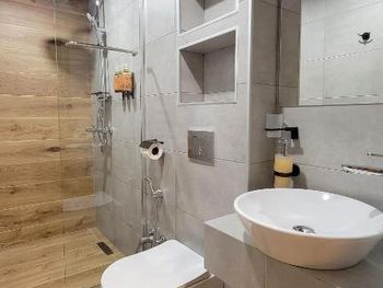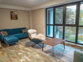 Прекрасная локация отеля не далеко от центра города и ресторанов, с видом на реку. В номере есть все необходимое, очень удобное оснащение ванной комнаты, с полочками и полноценной душевой кабиной. Новый и свежий ремонт. Достаточно разнообразный завтрак, для гор, где ничего нет, я считаю вообще супер. Прекрасные видовые балконы. Очень дружелюбный персонал. Помогли с организацией трансфера в Ушгули, угостили вкуснейшим домашним тортиком, мы ощущали себя как дома! Спасибо большое!
