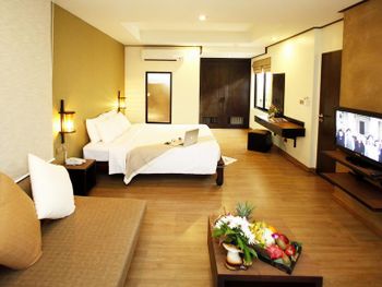 Просторные и светлые номера отеля с плиточными полами оформлены в современном тайском стиле. Они оснащены кондиционером, телевизором со спутниковыми каналами и холодильником.