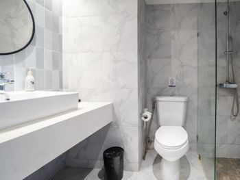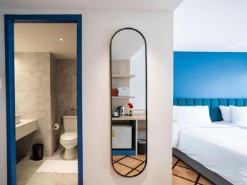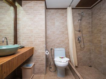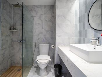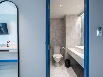 Отвратительный туалет с душем, вечная вонь в номере из канализации, душ закрывался короткой шторкой, через которую просачивалась вода во время водных процедур и весь туалет был вечно в лужах. На окнах и дверях нет москитных сеток, невозможно было оставить открытым окно, все время налетали комары и мошки.