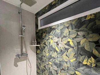Душевой отсек не оборудован дверью или шторкой из-за чего вода попадала на унитаз и на пол во всей ванной комнате