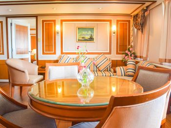 Номера и люксы оснащены деревянными полами и имеют вид на море или сад. Все номера просторные, со спутниковым телевидением, мини-баром и гостиным уголком. В каждом номере есть ванная комната, отделанная мрамором, с горячим и холодным душем.