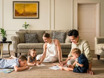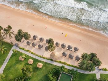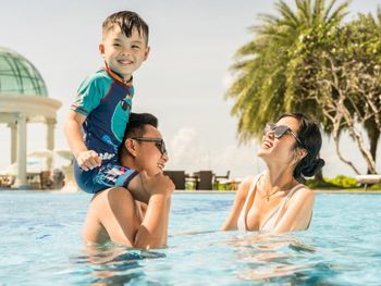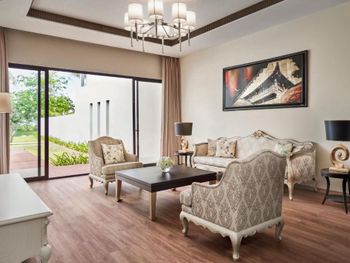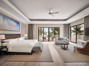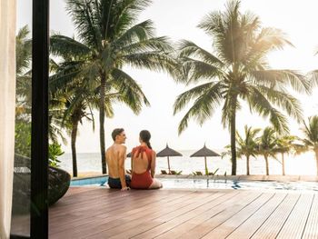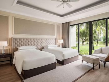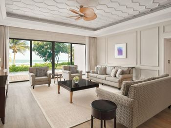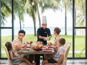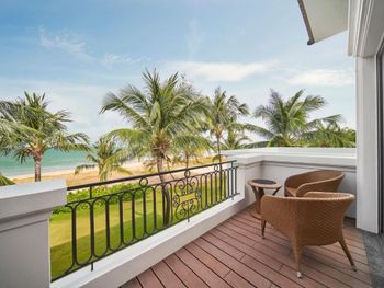 Жили в 4спальной вилле на пляже. Просто идеально. Виды шикарные. 2х этажная. Большая гостиная, две просторных спальни внизу, две наверху, одна из них- огромная. Хорошая мебель, белоснежные полотенца комфортные комнаты,воду приносят в необходимом количестве, к уборке никаких претензий. У отеля широкая и длинная пляжная полоса, напротив вилл- нет лежаков, поэтому людей на пляже не было совсем. Полежать можно было не отходя от виллы, было ощущение что пляж и море были наши личные. Брали только завтраки- отличные, но 2м этаже еще и всегда малолюдно. Дети на обед что-то покупали в основном здании. Им нравилось, но особенно восхищались пиццей. Действительно очень достойная. На ужин несколько раз посетили wok&carry - очень вкусно. Депозит, снимаемый при заезде (10 млн донгов) возвращать не пришлось, потрачено было больше.