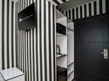 В номерах есть чайник.Интернет, фен, холодильник, кондик. Это важно. Чистое белье, чистые комфортные номера. Лифт большой, во втором корпусе.Сотрудники говорят по английски.Спасибо за гостеприимство!