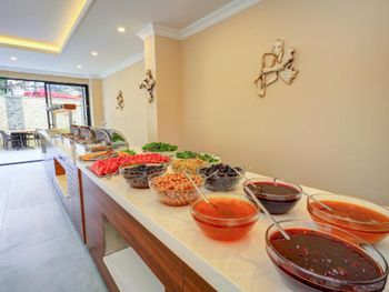 Такой подробный отзыв мой первый, надеюсь кому-то будет полезен! Наше заселение было после обеда, поэтому вопросов не возникало, сразу дали ключ. Номер небольшой, сам чистый и аккуратный, хоть и мебель уже старенькая, но для отеля 2* - отлично. С сантехникой вопросов не возникало, все работало исправно. В номере: кровать, тумбочка, шкаф, кондиционер, столик и два стула, туалетный столик с пуфиком и на балконе ещё два пластиковых стула. В отеле есть лифт, что очень удобно для подъёма с чемоданами. Завтраками были довольны. На завтрак давали: отварные яйца, вкусный хлеб, всегда свежий, два вида сыра, помидоры, огурцы, колбаса турецкая), вкусные жареные булочки (как для пирожков), маслины, оливки. И чередовались картошка фри, что-то типо омлета и соски с перцем жареные. Различные джемы, и хлопья с шоколадными шариками были, кто ест такое на завтрак мог залить молоком. Из напитков: вода, чай, кофе.
